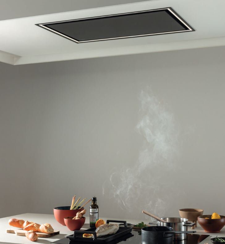 Le design épuré et minimaliste du plafonnier permet aux cuisiniste et agenceurs de concevoir des cuisines avec une ambiance moderne et élégante. En étant placées au plafond, ces hottes libèrent de l'espace au-dessus de la zone de cuisson, offrant une meilleure visibilité et un accès dégagé, même si un faux plafond est quasi systématique. La hotte est invisible dans le plafond et permet de cacher le circuit de recirculation ou l’évacuation par le haut ou le côté. Ce type de hotte est idéale et particulièrement appréciable pour les cuisiniers de grande taille.