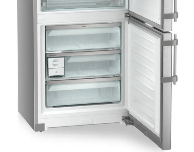 Comme évoqué plus haut, le système DuoCooling est une autre fonctionnalité notable du Liebherr CBNsda 775i. Grâce à ce système, le réfrigérateur et le congélateur disposent chacun de leur propre circuit frigorifique, ce qui permet de contrôler indépendamment les températures de chaque compartiment. Le froid est humide et ventilé en haut pour ne pas dessécher. En bas le froid est sec, No Frost. Cela signifie aussi que les odeurs et l’humidité ne se mélangent pas entre les deux zones, garantissant ainsi une meilleure conservation des aliments, une efficacité énergétique optimisée et une plus grande robustesse.