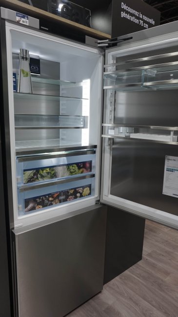 Parmi les stars de la présentation, le congélateur FNb 5056 se démarque en intégrant pour la première fois la technologie BluRoX, utilisant une isolation sous vide révolutionnaire à base de perlite. Bien que cela augmente le poids de l'appareil, les promesses de performances sont interessantes, avec une économie de volume pouvant atteindre 25% et une réduction de la consommation énergétique d'environ 30%. Pour le moment il n’y a que la porte qui est fabriquée ainsi. La démarche écologique ne s'arrête pas là, Liebherr souligne également ses efforts pour améliorer les performances énergétiques de l'ensemble de ses appareils, comme le démontre le réfrigérateur-combiné CBNbsa10 575i, surpassant de 10% les appareils classés A.
