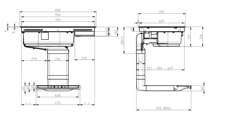 Oui, il peut vous rester un tiroirs casserolier en fonction de votre configuration. Je vous ai joins un schema d'une installation avec deux tiroirs. Vous vous rendrez compte de l'épaisseur de la Switch Cordialement,