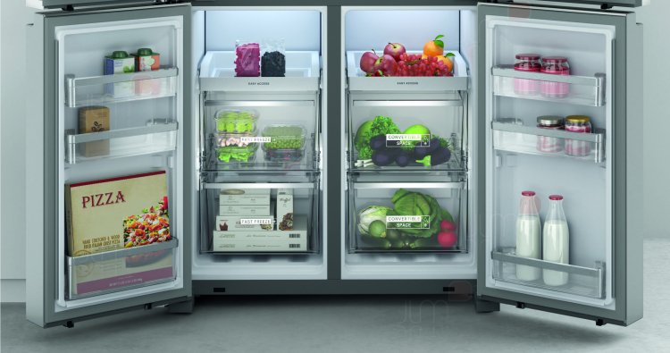 C’est un réfrigérateur américain à 4 portes avec fabrique de glaçons automatique, avec un compartiment convertible en réfrigérateur, congélateur ou cave à vin. L’aspect extérieur et intérieur est premium, dès la première référence. Ses dimensions sont de 187.5cm par 90.8cm de largeur et 71.6cm de profondeur.