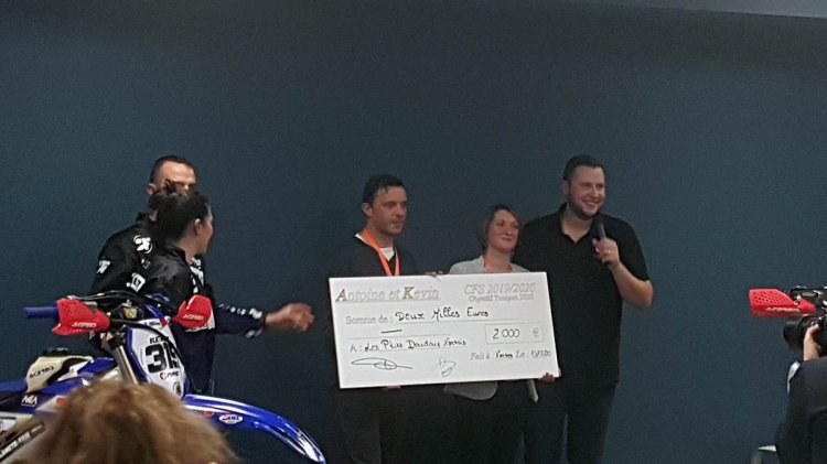 Je rappelle tout de même que pour soutenir les p’tits doudous, la fine équipe d’Antoine et Kevin avait déjà aidé l’association l’année précédente en fournissant l’équivalent d’une tablette. Cette année, ils ont fait très fort, puisqu’ils ont remis officiellement un GROS chèque de 2000€ aux p’tits doudous ; de quoi grandement les aider à atteindre leur objectif de 12000€ pour obtenir le nombre suffisant de tablettes (si j’ai bien compris)